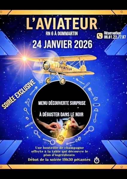Le 24 janvier 2026, vivez une expérience culinaire sensorielle unique au restaurant L’Aviateur (RN 6 à Dommartin) :